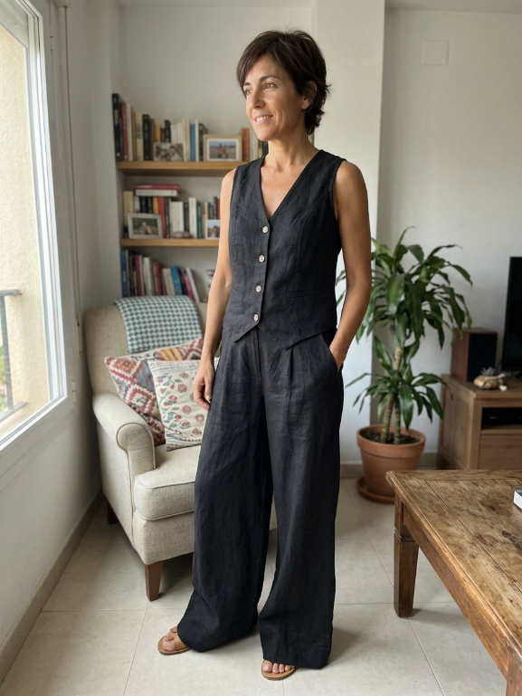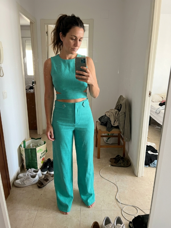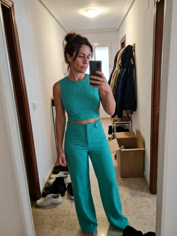 Muy bonito y diferente, el top queda genial y los pantalones son súper cómodos. Me ha encantado.